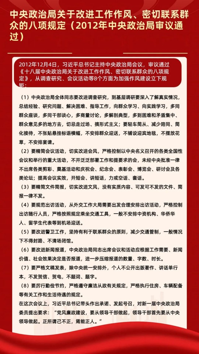 黨的作風(fēng)就是黨的形象,關(guān)系人心向背,決定黨和國(guó)家事業(yè)成敗。黨的十八大以來(lái),以習(xí)近平同志為核心的黨中央從制定和落實(shí)中央八項(xiàng)規(guī)定開(kāi)局破題,堅(jiān)持自上而下、以上率下,解決了新形勢(shì)下作風(fēng)建設(shè)抓什么、怎么抓的問(wèn)題。八項(xiàng)規(guī)定一子落地,作風(fēng)建設(shè)滿盤(pán)皆活,黨風(fēng)政風(fēng)煥然一新,社風(fēng)民風(fēng)持續(xù)向好,我們黨以作風(fēng)建設(shè)新氣象贏得了人民群眾信任擁護(hù)。